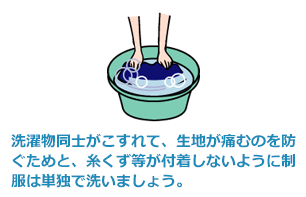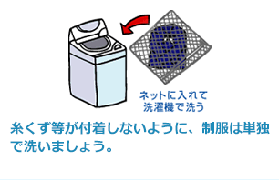 ※ウールはアルカリに弱いので、ウール混の制服を洗濯する場合は、ウール・おしゃれ着洗いなどと